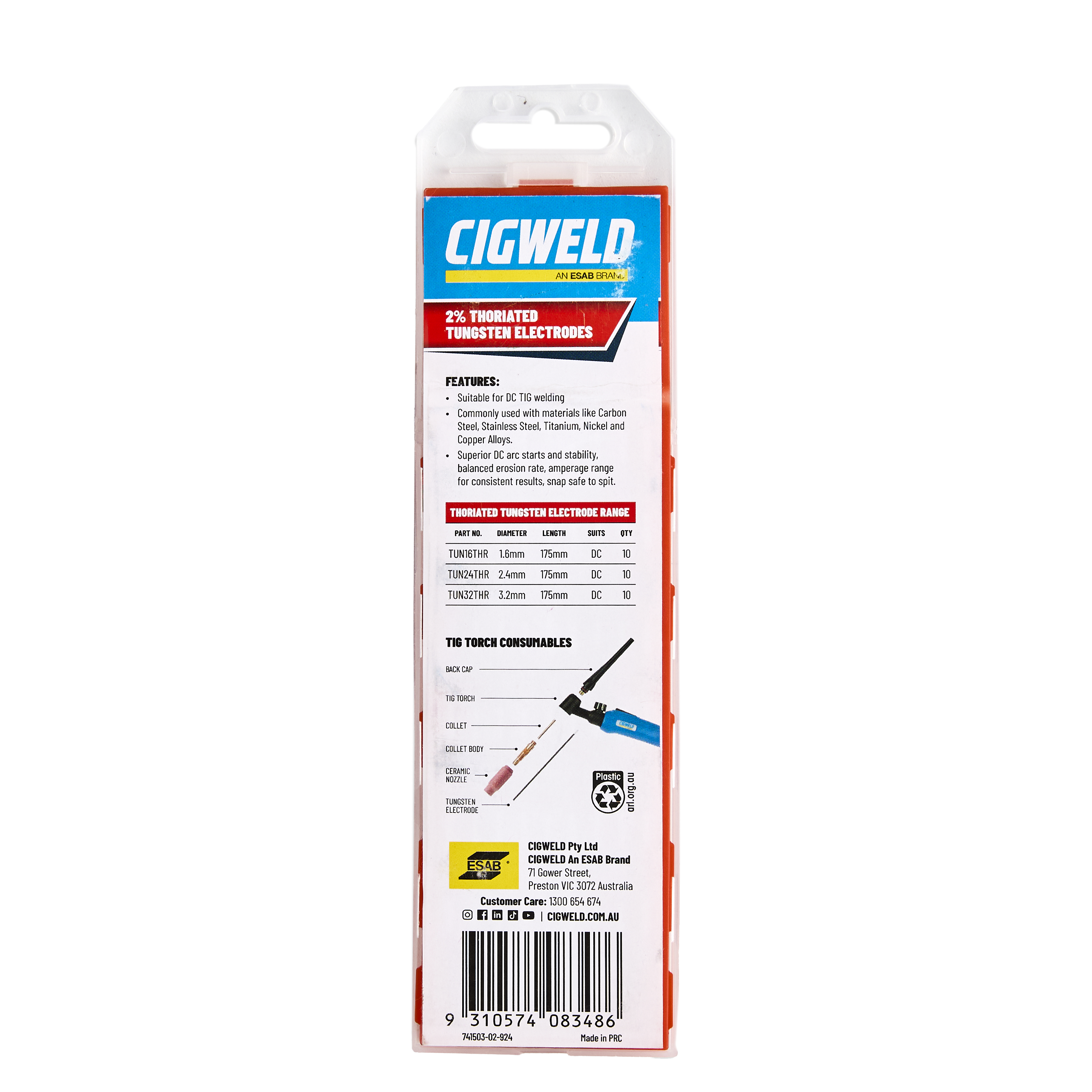 Note: Thoriated tungsten electrodes pose a low-level radiation hazard when inhaled as vapour or grinding dust. Always wear protective equipment and use adequate ventilation.