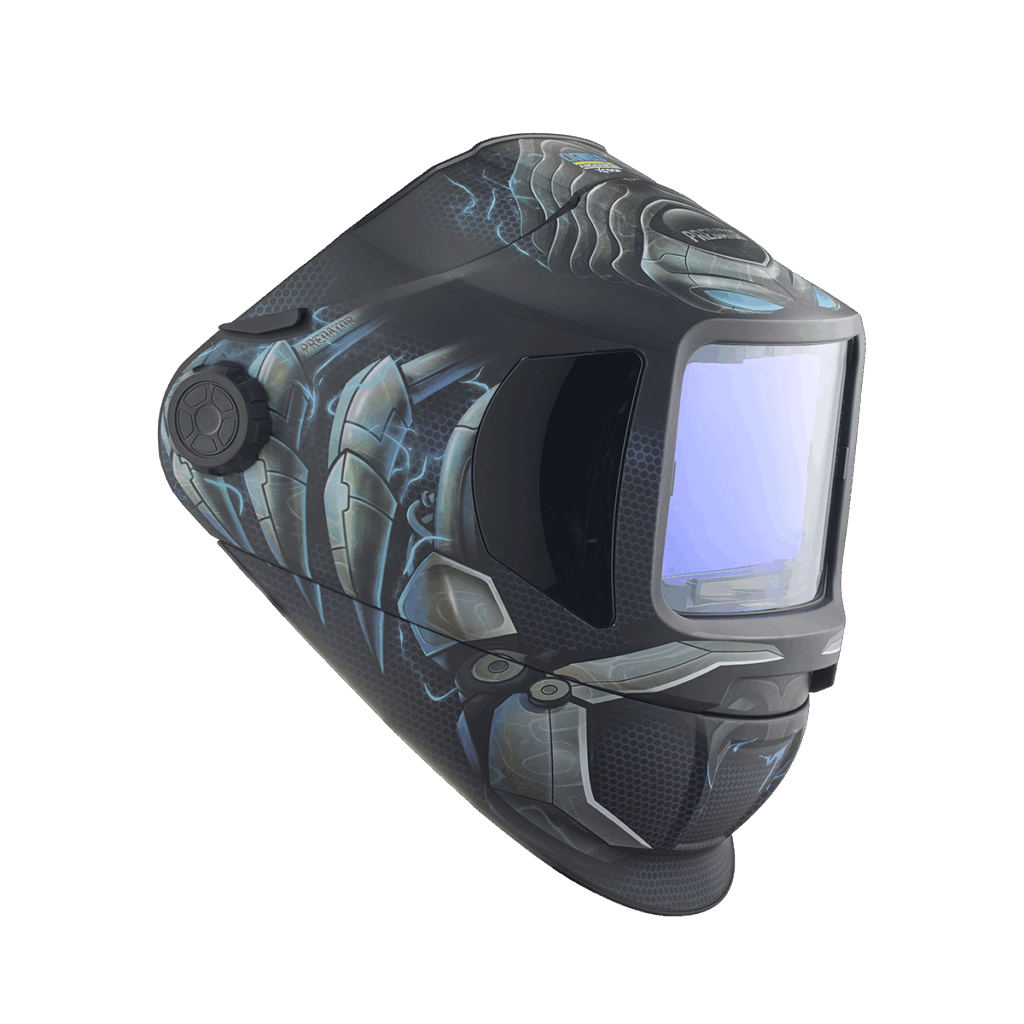 The XC90F features one of the largest viewing areas in a flip welding helmet at 118mm x 83mm = 99mm² combined with an even larger clear grinding visor at 240mm x 120mm = 170mm² for an unrestricted view of the workpiece. The viewing experience is enhanced by 2 shade 5 passive side windows that offers an extraordinary panoramic view of the weldment. Passive side windows covers are also included with the helmet for welders who prefer slightly restricted view.