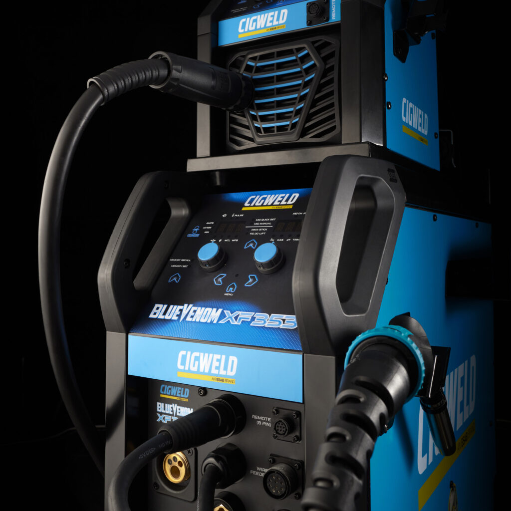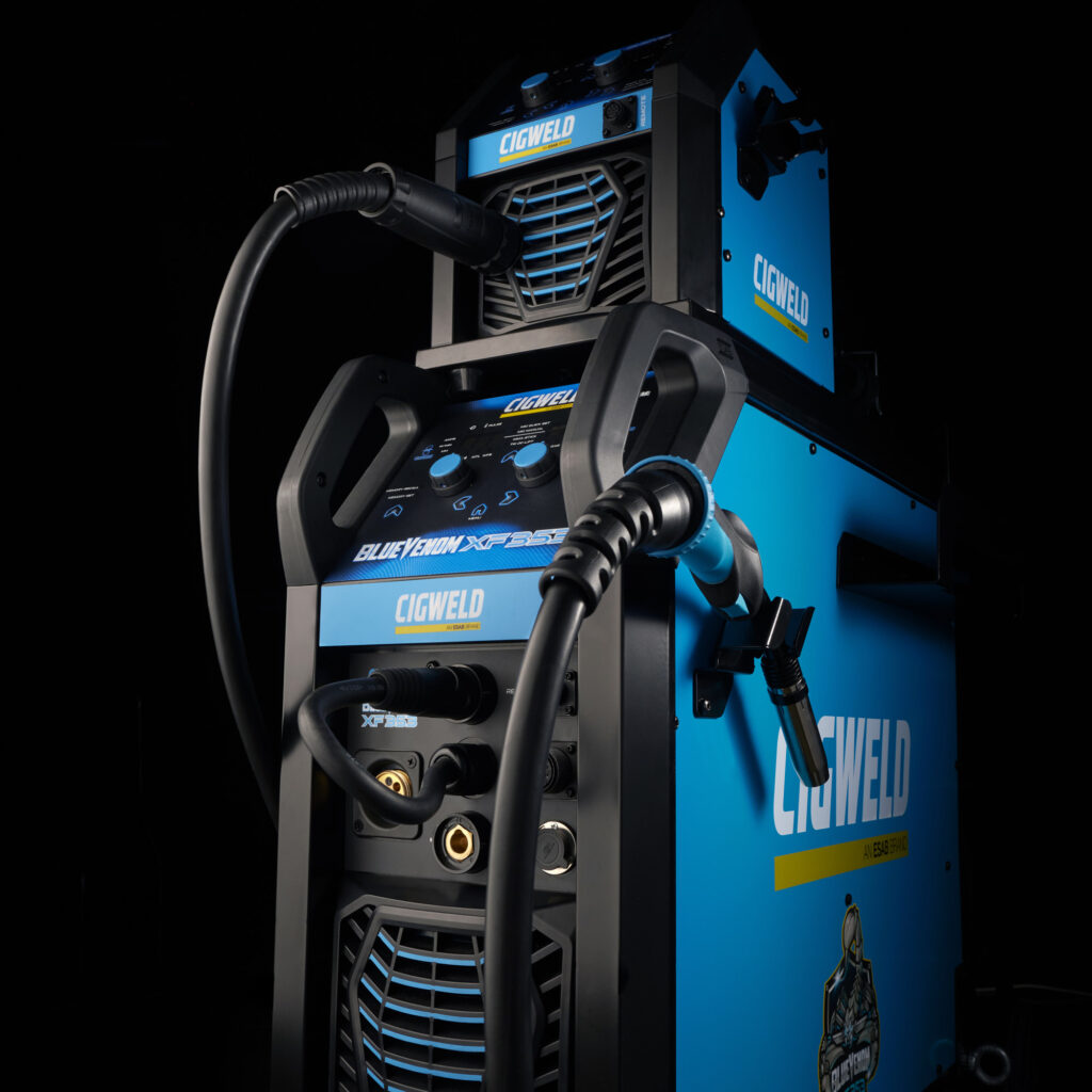 The new BlueVenom™ XF353 is a 3-in-1 multiprocess welding inverter that has been specifically engineered to be narrower in size for easy access in tight and constrained areas but also as a modular arc station!