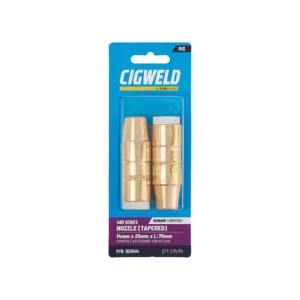 Handy retail packs of 2 pieces which are colour coded for each MIG Gun style for easy identification. The rear of the pack includes product dimensions, available sizes, Cigweld legacy part number, along with the industry recognised part number.