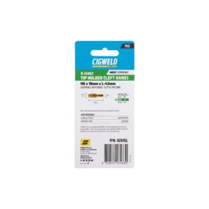 Handy retail packs of 2 pieces which are colour coded for each MIG Gun style for easy identification. The rear of the pack includes product dimensions, available sizes, Cigweld legacy part number, along with the industry recognised part number.