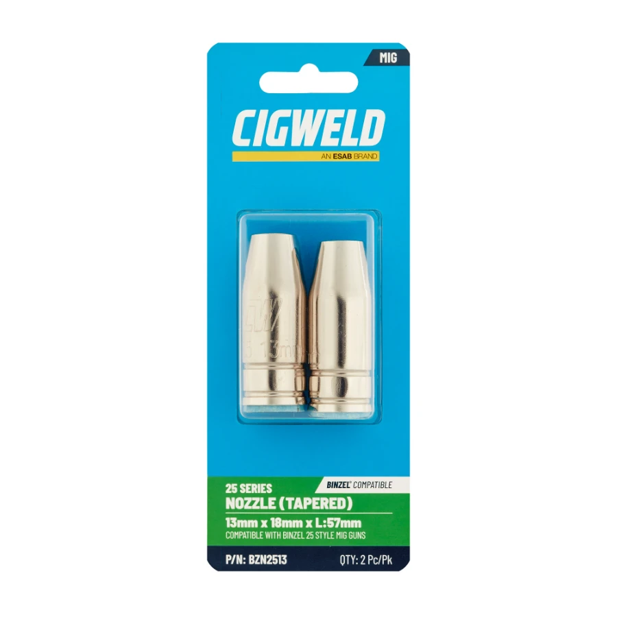 Binzel compatible MIG Gun Nozzles available in multiple bore diameters to suit your welding requirements.