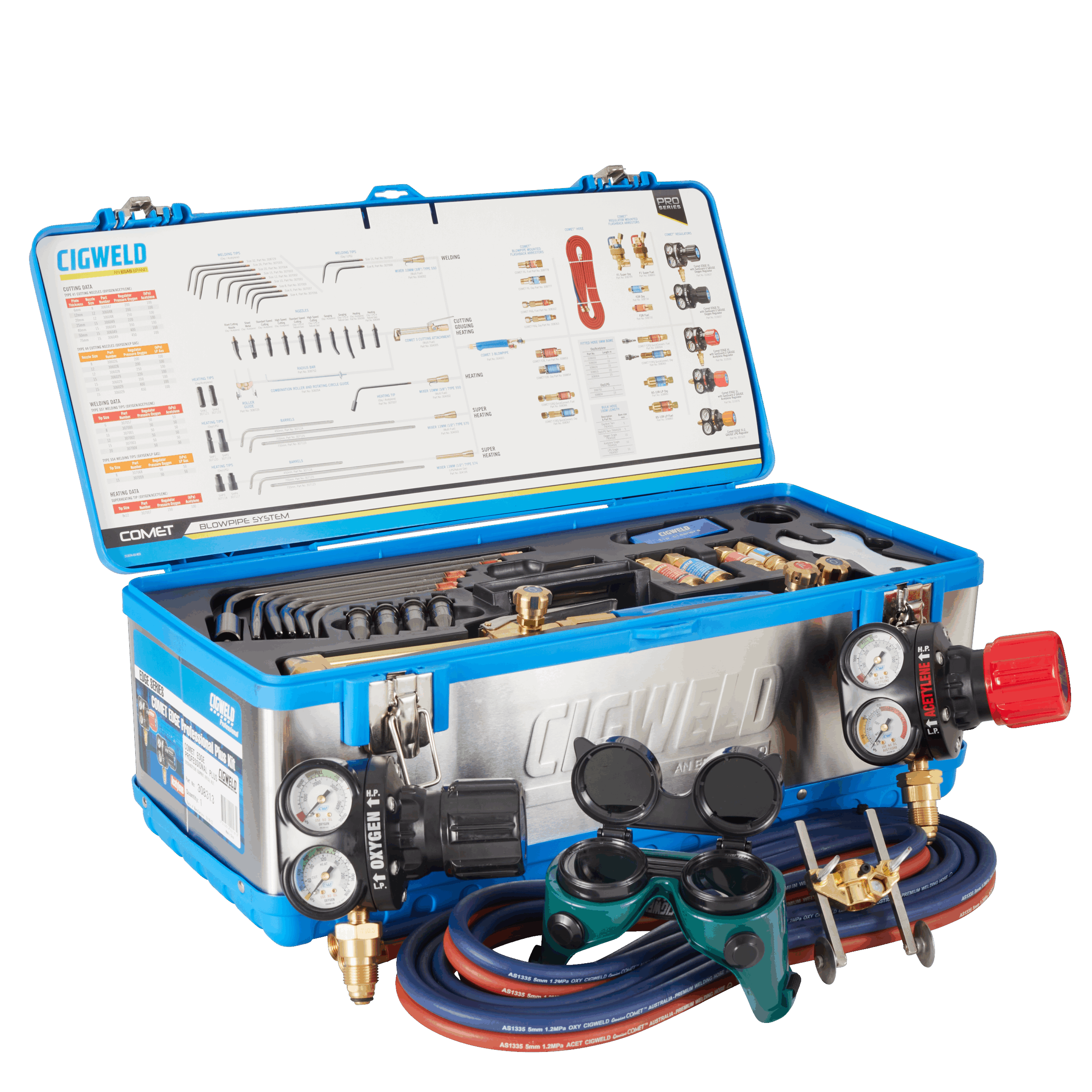 COMET EDGE Professional Plus Kit is a complete outfit containing everything the professional tradesman or other discerning buyers could possibly want for gas cutting, welding and heating. The components in this outfit provide incredibly good value for money. A magnificent kit that has the Gasgaurd safety feature standard in the regulators. The components in this COMET EDGE Professional Plus Kit conform to AS 4839.