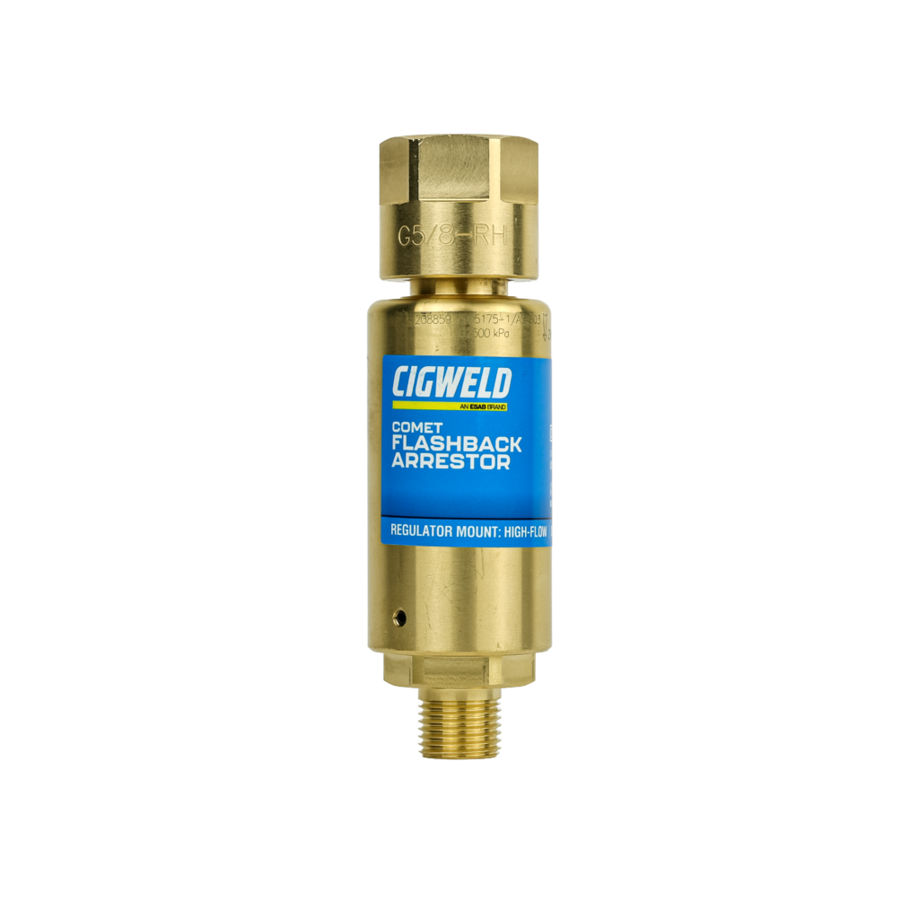These COMET™ High Flow FBA’s are designed to prevent flashback flame and reverse flowing gases inside the regulator or blowpipe from burning or mixing in the hose and gas supply system.