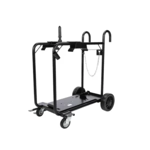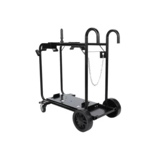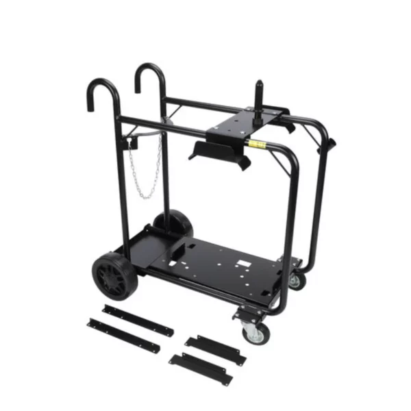 The ESAB 4 Wheel Trolley for Warrior 400i/500i Welding Machines is a versatile and robust solution for easy mobility. Engineered for stability, it supports the heavy-duty Warrior welding machines with four sturdy wheels, ensuring smooth transportation across various work environments. This trolley enhances job site flexibility, making it convenient to move and position the Warrior 400i/500i machines for optimal welding performance. It has a mounting post that allows the wire feeder to conveniently rotate according to your needs, a MIG Gun Holder and an Interconnection Lead Organizing Holder. Works with Robust Feed Pro and Warrior Feed units.