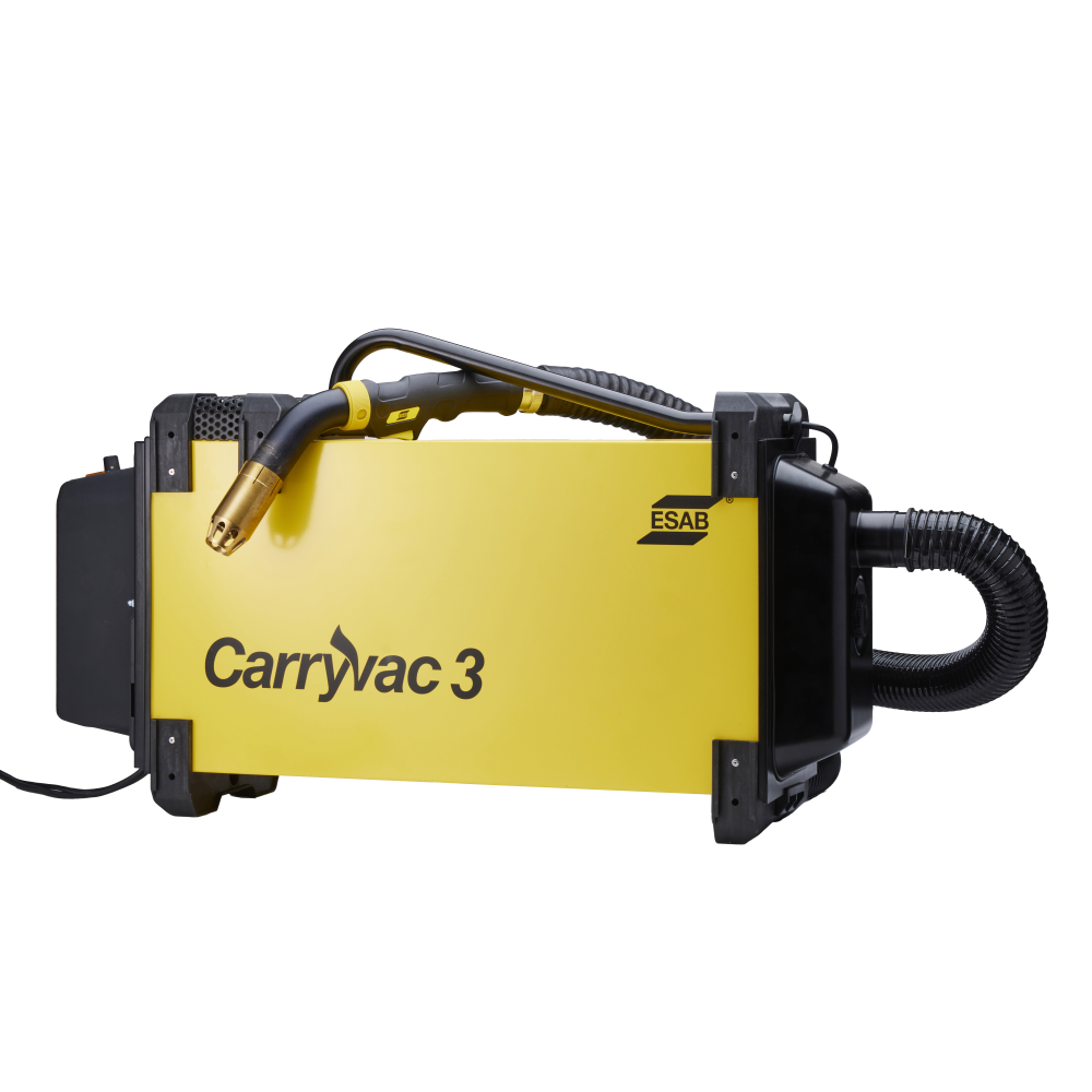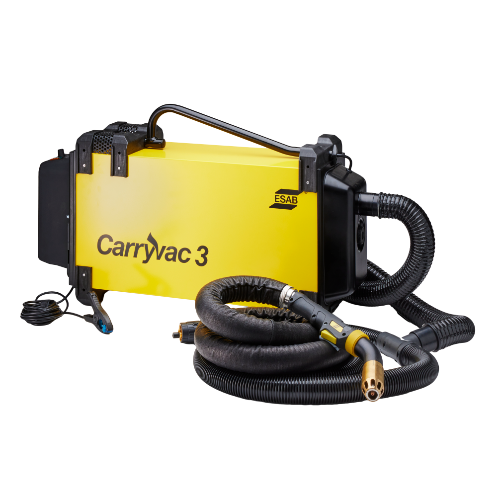 The ESAB CarryVac 3 AST is a small, lightweight, and portable fume extraction unit used to maintain a healthy work environment by extracting fumes directly at the source in light duty welding applications. Designed to be carried to the working area, it can be connected to either a fume extraction MIG Welding Gun or to an optional extraction nozzle to extract harmful welding fumes. Weld fumes are filtered and captured in a hygienically packed filter that offers complete protection from particles keeping them isolated from welders even when performing a filter change.