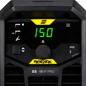 Tested in laboratories around the world to ensure it rises to global performance and usability standards. Its easy-to-use interface contains a large, precise digital display that can be easily read from up to 25m away. The optional remote control allows you to adjust current settings without needing to go back to the machine. No matter where you are working, the ESAB Revenge ES 151iP PRO simply welds well.