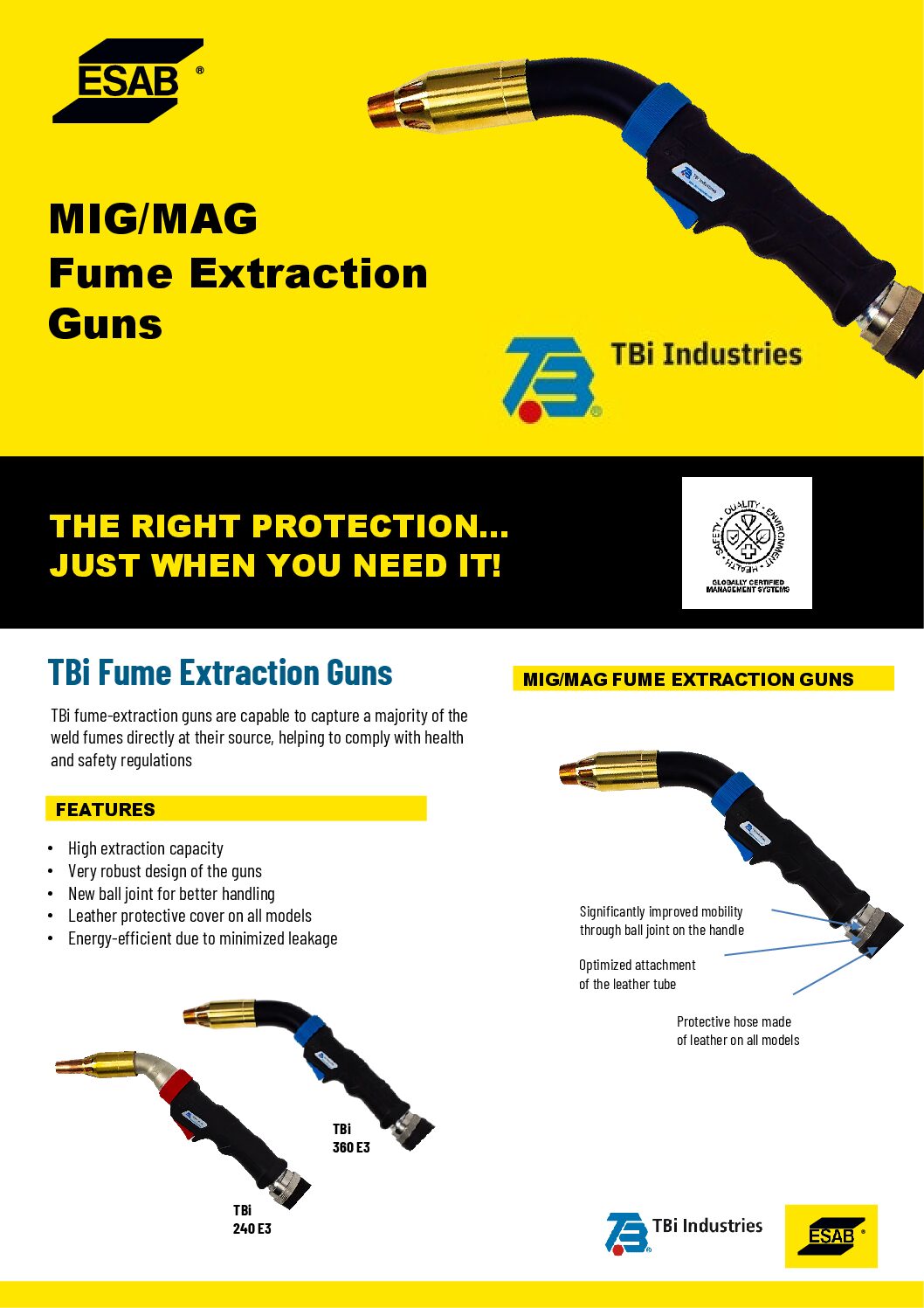 TBi fume-extraction torches are capable to capture a majority of the weld fumes directly at their source, helping to comply with health and safety regulations.