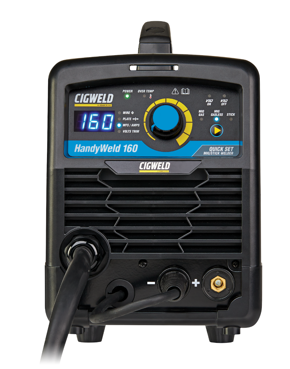 The CIGWELD HandyWeld 160 is a compact, easy-to-use inverter MIG and Stick welder designed to eliminate setup guesswork.