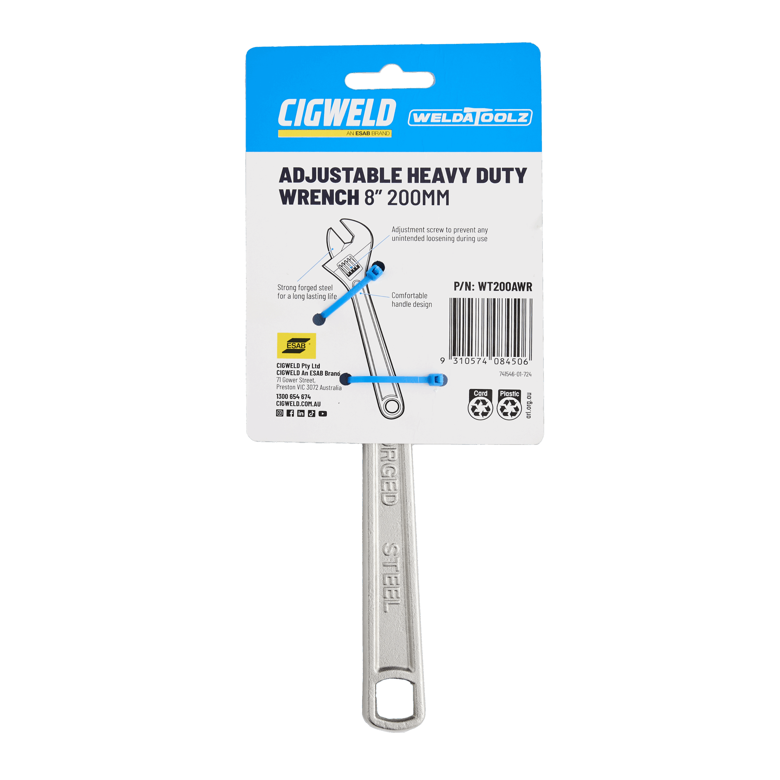 The WeldaToolz Heavy Duty Adjustable Wrenches feature an adjustable screw to prevent unintended loosening during use, a robust forged steel construction for long-lasting durability, and an ergonomic handle design for enhanced comfort.