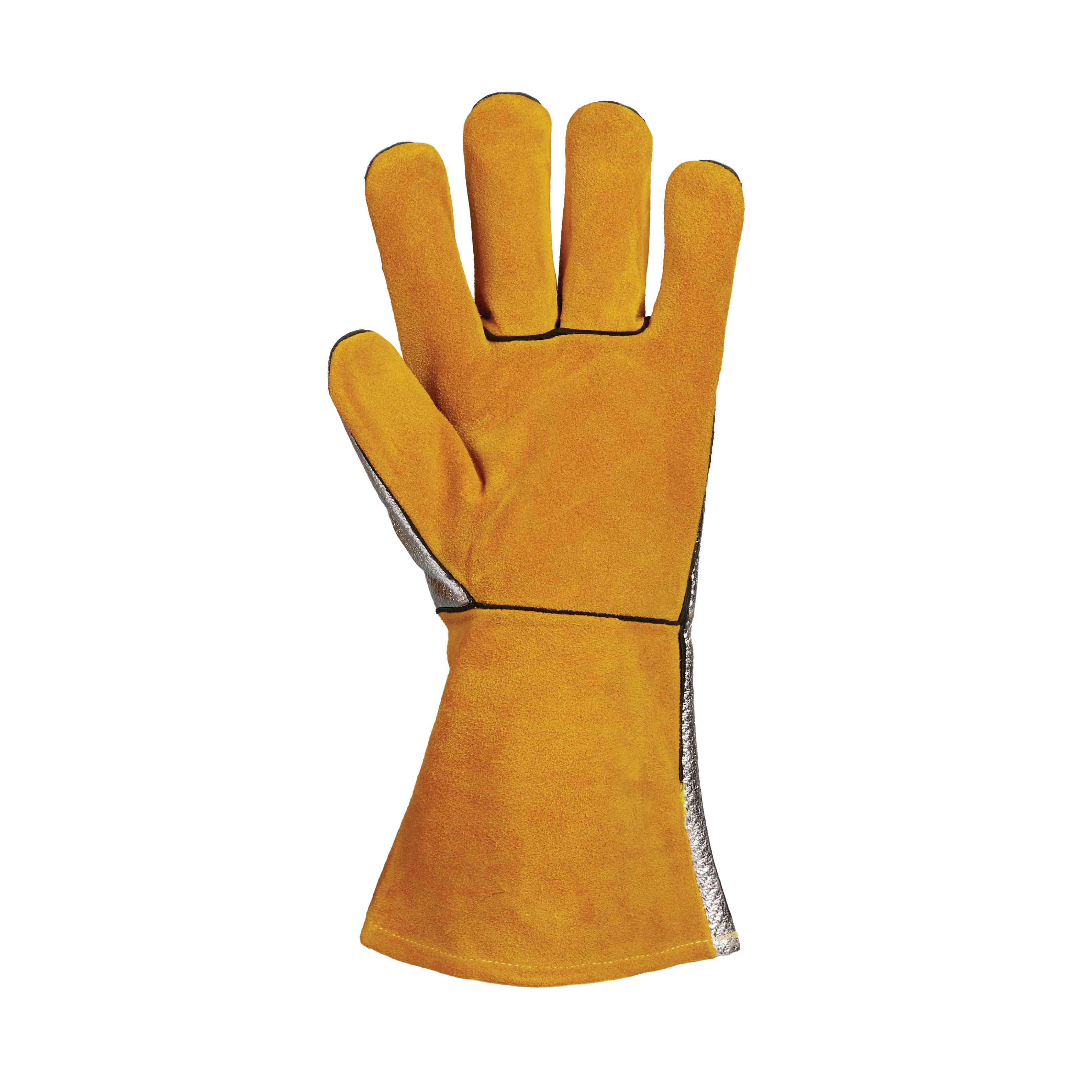 Experience superior heavy-duty protection with ESAB WeldOps HD Aluminized welding gloves. These gloves feature a full aluminized back for high heat and heavy-duty welding applications. Fully lined with premium grain leather, they offer exceptional comfort and heat resistance. With strategically placed reinforcements and Kevlar® stitching, these gloves are built to last and provide maximum safety in demanding welding environments. Gear up for superior protection and performance in your welding work.