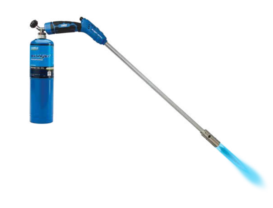 The JET414 Weedburner is part of our CIGWELD BlueJet Range. Boasting a perfectly balanced ergonomic handle, the JET414 sits comfortably in the hand and at the right angle for use. The whole unit was designed with the users comfort in mind. Unlike most weedburners on the market we moved the piezoelectric started up onto the handle so you don’t need to reach down the hot end to start it, saving your back. Used with our BlueJet Propane fuel cell (or other standard sized propane cylinders), this torch puts out a constant high BTU flame that is capable of handling all your weeding needs.