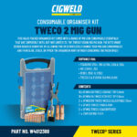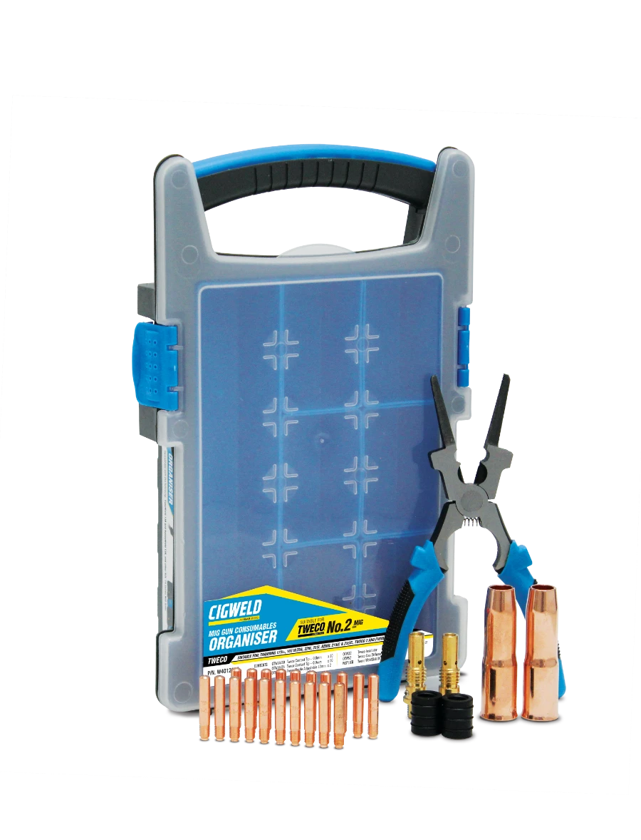 The ideal companion for MIG welders are the Cigweld MIG Gun Consumables Organiser Kits.