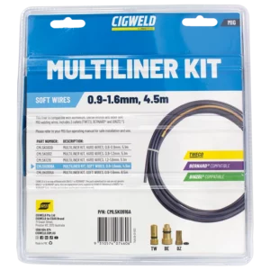 Ensure smooth wire feeding with the Cigweld MultiLiners. Suitable for different wire sizes, both hard wires and soft wires. Engineered for durability and precision, this liner facilitates consistent and reliable wire delivery, minimizing downtime and improving weld quality. Upgrade your welding equipment with this essential component for efficient MIG welding operations.