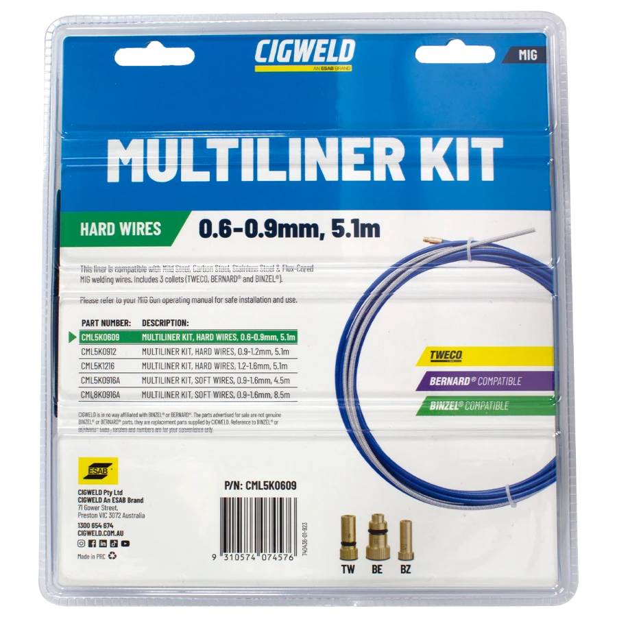 The CIGWELD MULTILINERS have been designed for the ultimate ease of use and to eliminate the need to have every brand of liner in stock.