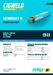 Satincraft 13 is Australia’s most popular general purpose electrode. It’s an all positional (except vertical down) and produces smooth professional mitre fillet welds with very low spatter levels, positive re-strike (hot or cold) and self-releasing slag.