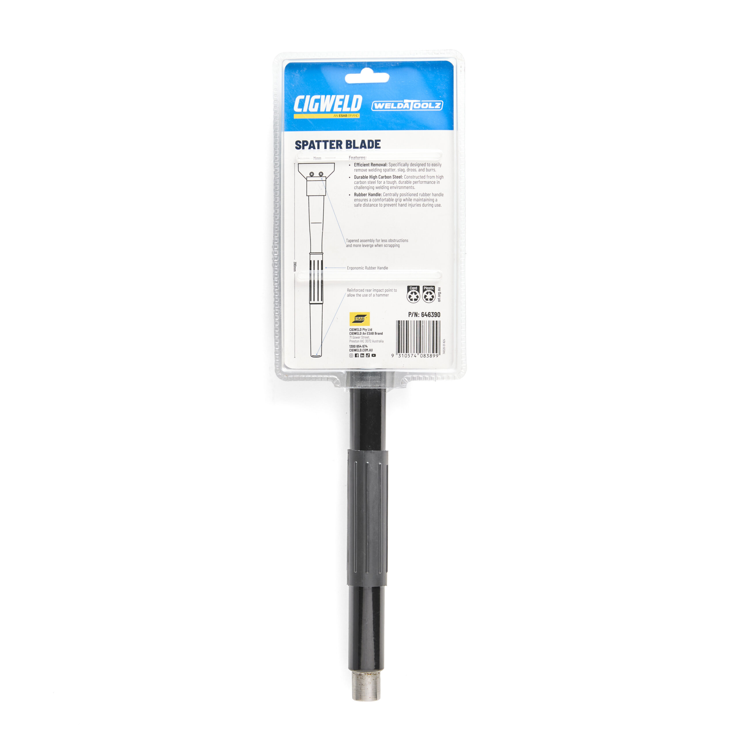 Made from high-carbon steel with a hardness rating of 55+, The WeldaToolz Spatter Blade delivers exceptional durability and scraping power in tough welding environments. Its ergonomic rubber handle and reinforced rear impact point make it ideal for both manual scraping and hammer-assisted cleaning.