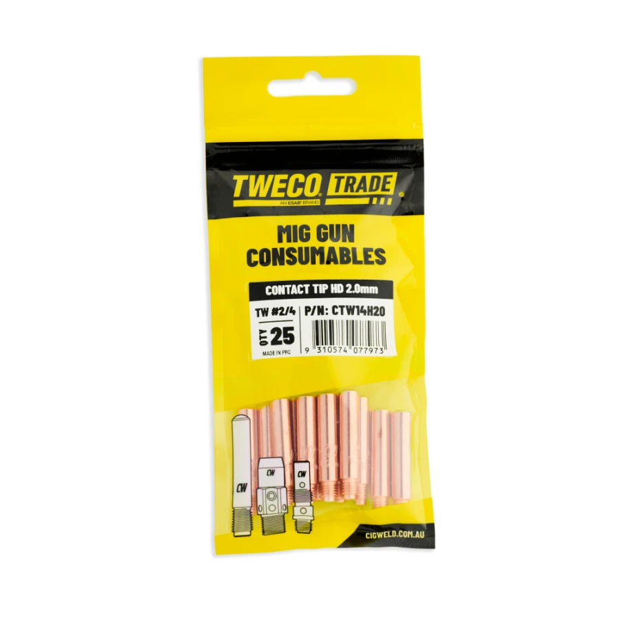 TWECO Professional Contact Tips are manufactured in North America and made from premium materials to exacting standards for longer lasting consumable life, roll marked with the TWECO logo so you know you’re getting a genuine TWECO Product. Available to suit multiple wire diameters from 0.6mm through to 2.0mm wires and available in packs of 25.