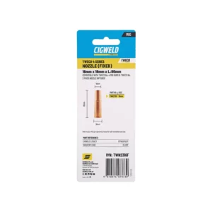 Handy retail packs of 2 pieces which are colour coded for each MIG Gun style for easy identification. The rear of the pack includes product dimensions, available sizes, Cigweld legacy part number, along with the industry recognised part number.