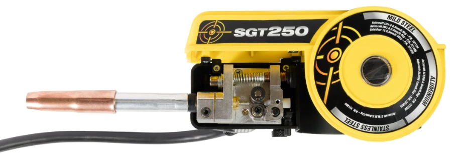 The SGT250 has adjustable pressure roll and spool roll tensions, a wire feed viewing window and an easy access flip top cover ensuring all the adjustments you need are at your fingertips.
