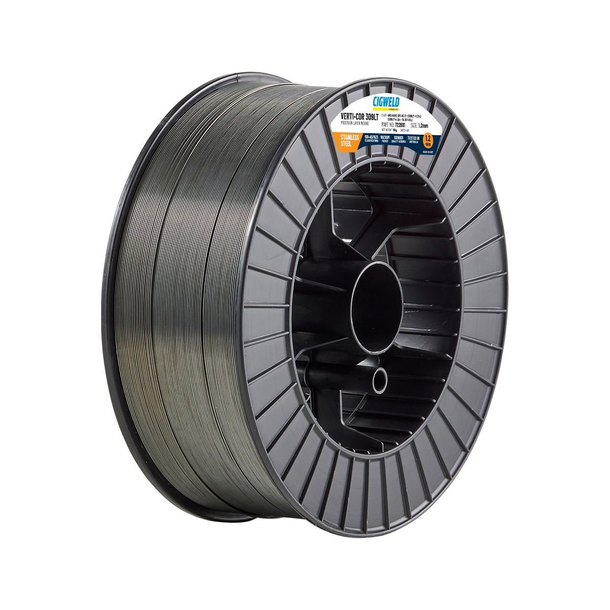 Verti-Cor 309LT is an E309LT1 gas shielded stainless steel flux cored wire for positional welding applications on matching 309 and 309L stainless steels.