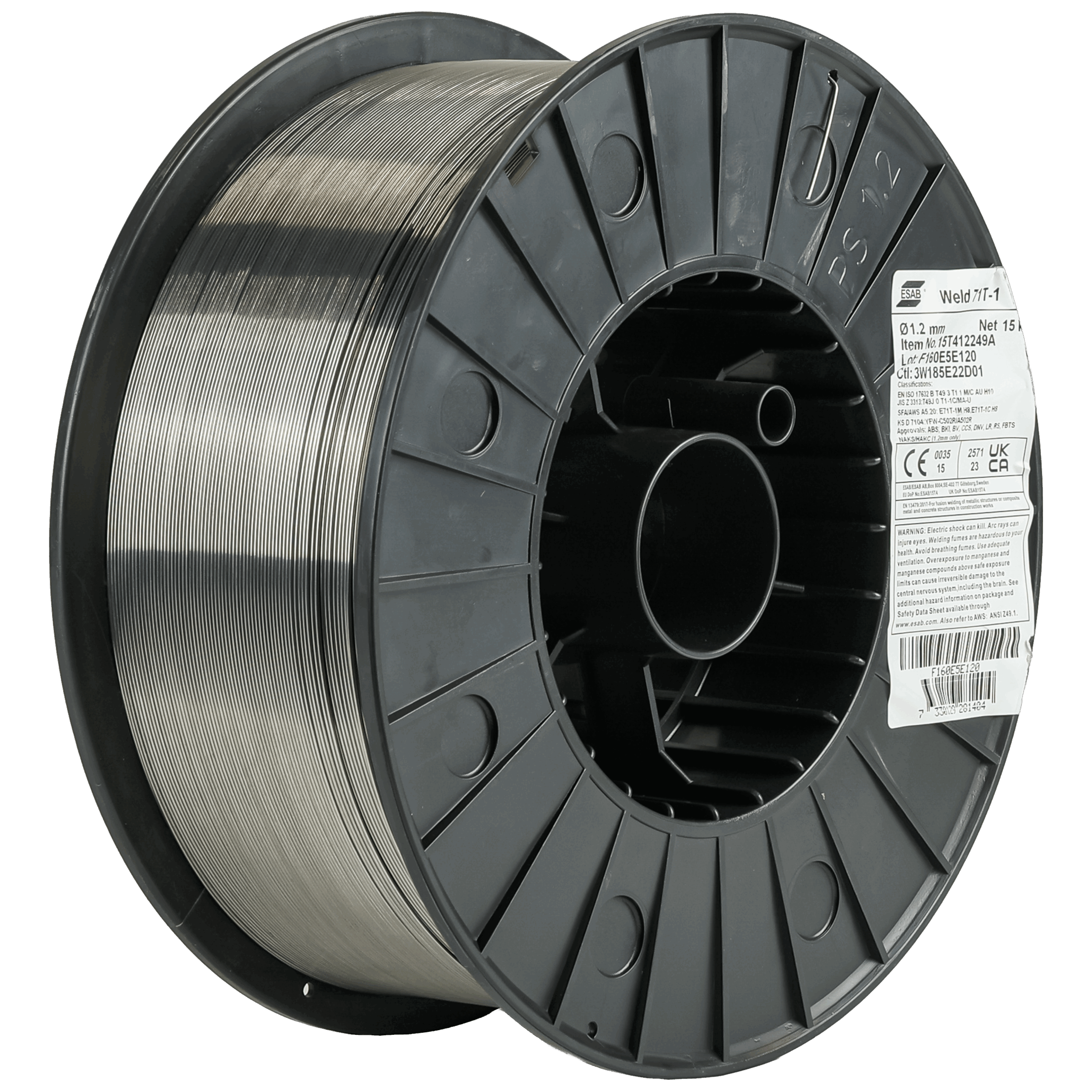 Weld 71T-1 is a versatile flux-cored wire suitable for a range of general fabrication applications. Designed for all-position welding, it features a rutile-based formulation and is compatible with both COâ‚‚ and Ar/COâ‚‚ mixed shielding gases (up to 75% Argon). The wire's C-Mn alloy composition supports strong, stable arc characteristics and smooth weld bead appearance, making it ideal for efficient, high-quality welding across various structural tasks.